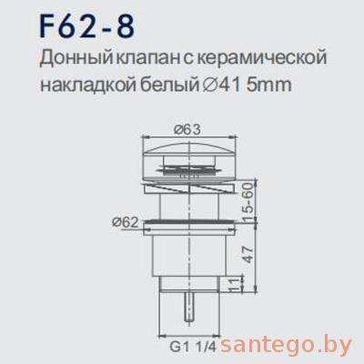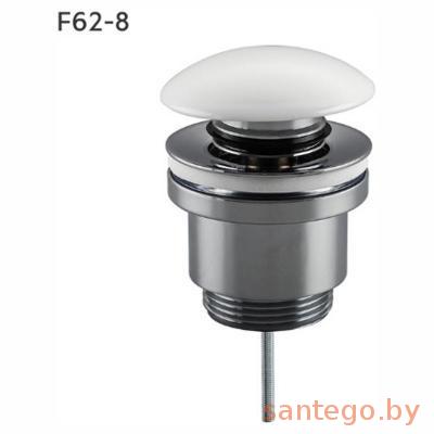 Донный клапан Frap F62-8 Донный клапан для умывальника, нажимной, верх белый. Универсальный, для раковин с переливом и без перелива. Цвет:хром+белый.