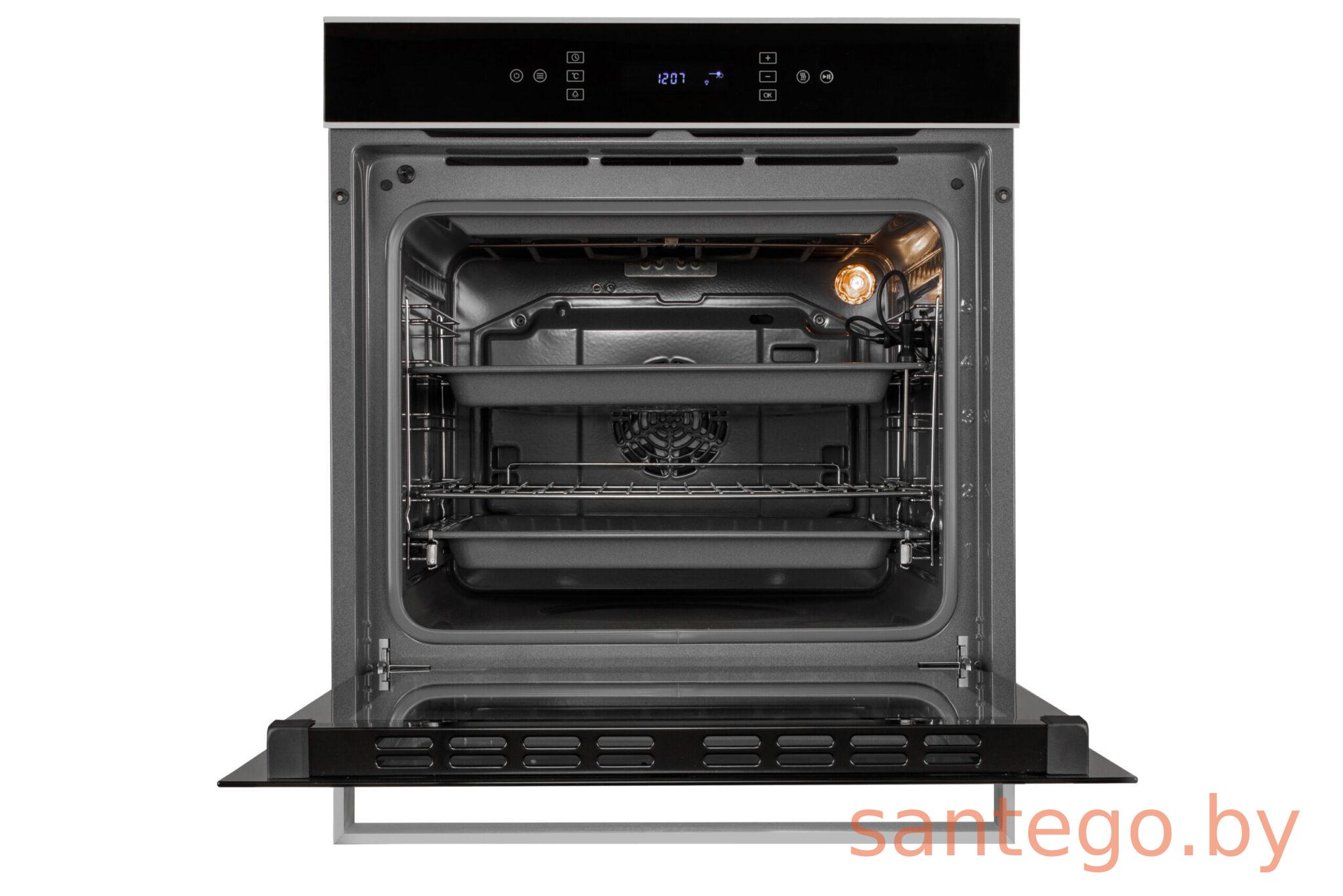 Духовой шкаф SCHTOFF CME 8006 — современная модель с жаропрочным стеклом и 11 функциями для профессионального приготовления. Благодаря интеллектуальным режимам и точному контролю температуры Вы сможете готовить как шеф-повар. Объем 71 л с системой 3D-конвекции обеспечивает равномерное пропекание блюд по всему пространству. Сенсорный LED-дисплей с интуитивным управлением и тройное остекление дверцы гарантируют безопасность и энергоэффективность. Плавный доводчик двери и тангенциальное охлаждение защищают мебель и продлевают срок службы техники. Компактные размеры позволяют встраивание в большинство кухонных гарнитуров. Идеальное решение для современной кухни — технологичное оснащение и элегантный дизайн сделают процесс готовки комфортным, а Ваши блюда — безупречными. Тип духового шкафа электрический Тип установки/монтажа встраиваемый Объём духового шкафа, л 77 Мощность подключения, Вт 3000 Управление сенсорное Цвет чёрный+нержавеющая сталь Класс энергопотребления A Максимальная температура, °C 250 Дисплей есть Количество стекол дверцы духовки 3 Плавное закрывание дверцы есть Очистка духового шкафа Self Cleaning Таймер есть Освещение есть Проволочные направляющие есть Телескопические направляющие есть Режимы работы духового шкафа Количество режимов работы 11 Конвекция есть Гриль есть Гриль + конвекция есть Нижний нагрев есть Верхний нагрев есть Нижний + верхний нагрев есть Нижний нагрев + гриль + конвекция нет Нижний нагрев + конвекция есть Верхний нагрев + гриль есть Верхний нагрев + конвекция есть Нижний нагрев + гриль есть Двухсторонний нагрев + конвекция нет Тэн (турбо) есть Комплектация духового шкафа Решетка-гриль есть Глубокий противень есть Стандартный противень есть Вертел нет Термощуп есть Габариты духового шкафа Ширина, мм 595 Высота, мм 585 Глубина, мм 550