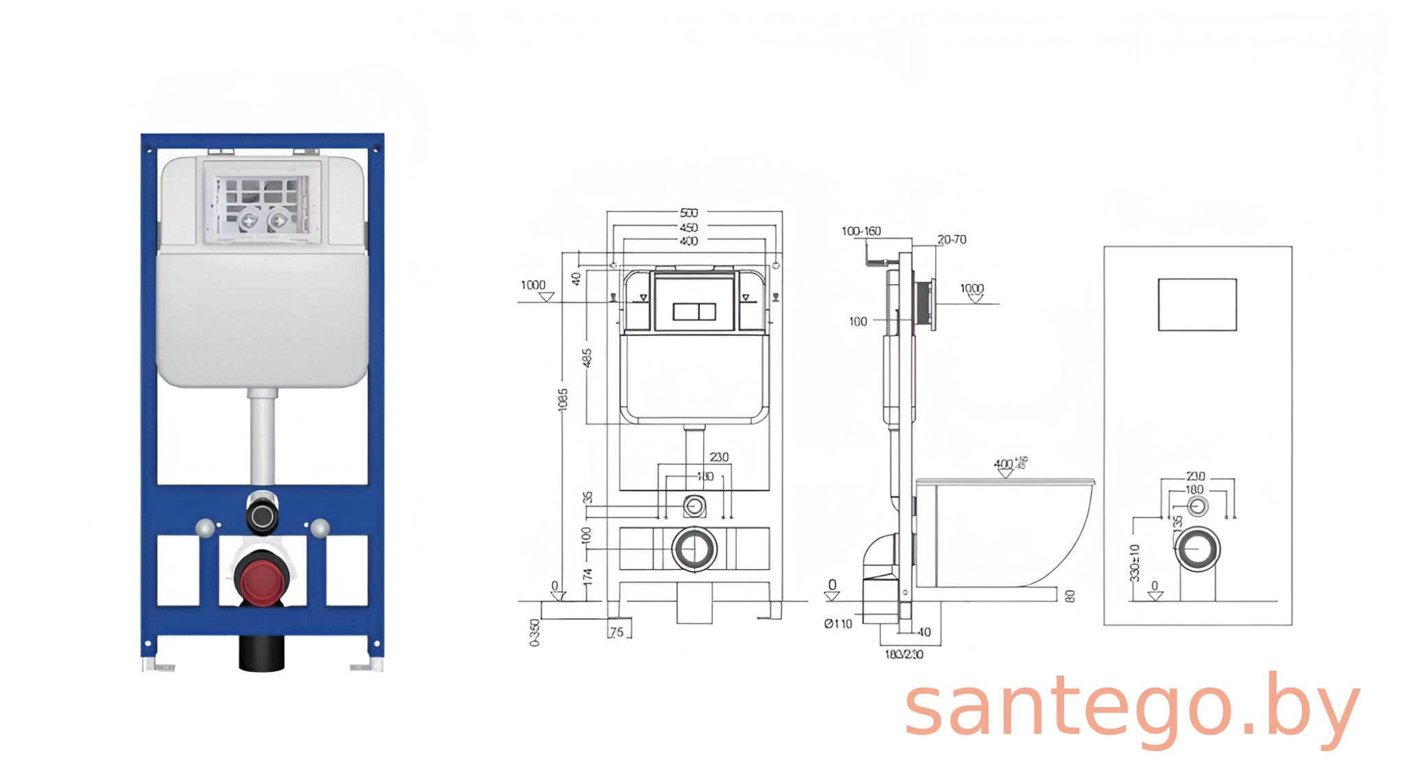 Инсталляция для подвесного унитаза пневматическая Gappo GM3003 без клавиши.