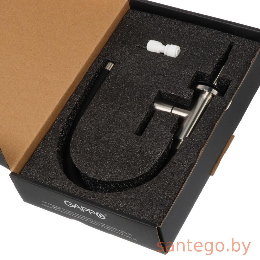 Смеситель для подключения питьевой воды Gappo G1052-95 (сатин, моно), смеситель только на одну воду, цвет сатин, корпус из нержавеющей стали, гибкий силиконовый излив.