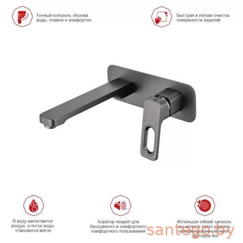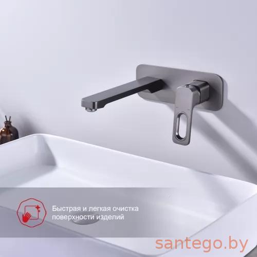 Смеситель для раковины Raglo R51.11.09 — встраиваемая модель в современном стиле, выполненная из латуни с матовым графитовым покрытием. Оснащён средним стационарным изливом, аэратором и однорычажным управлением. Подходит для монтажа с накладными чашами благодаря продуманной форме и качественному картриджу 35 мм.