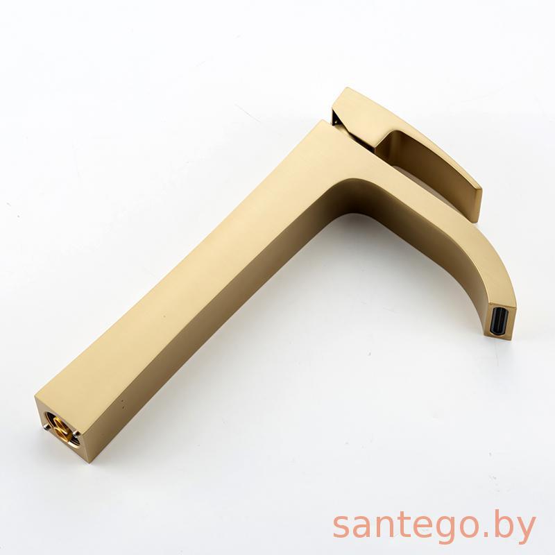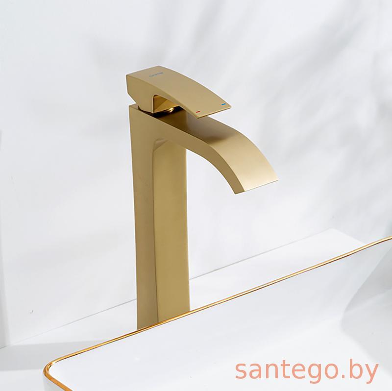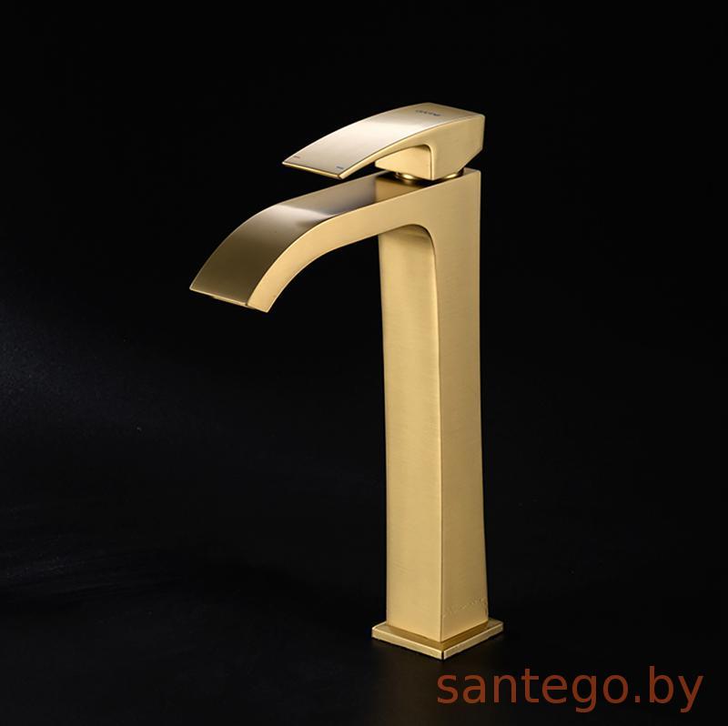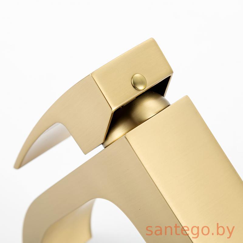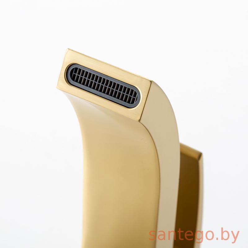 Смеситель для умывальника Gappo G1007-233 золотой сатин, излив водопад.