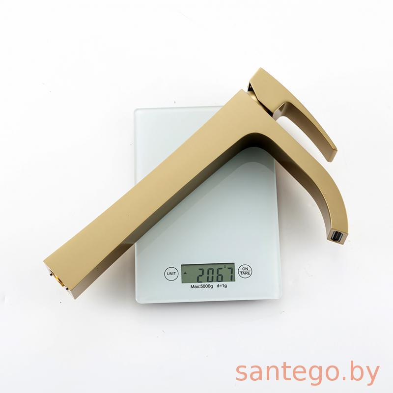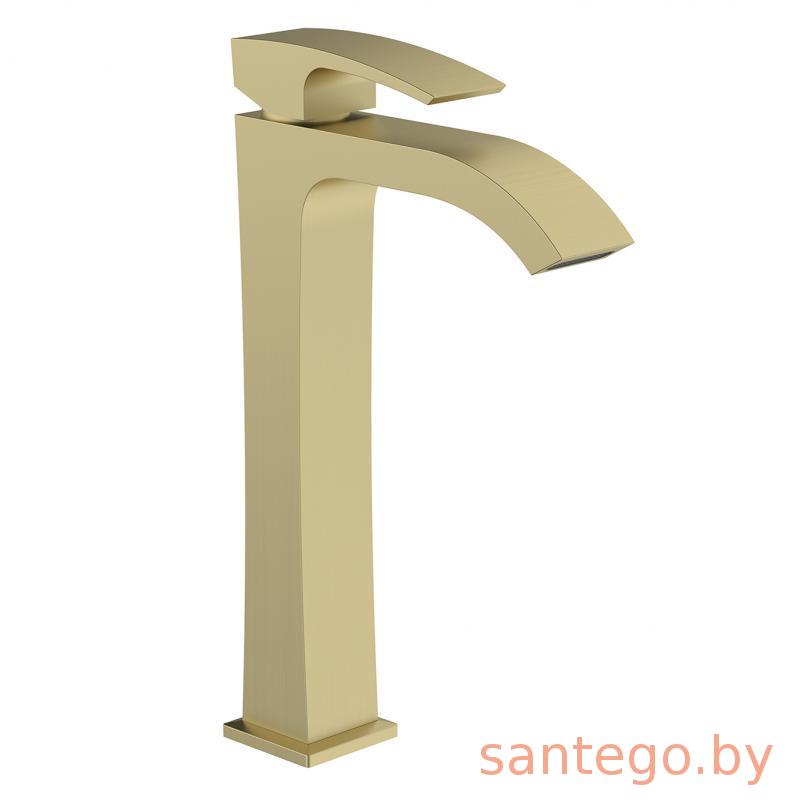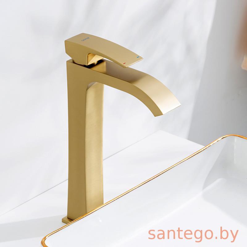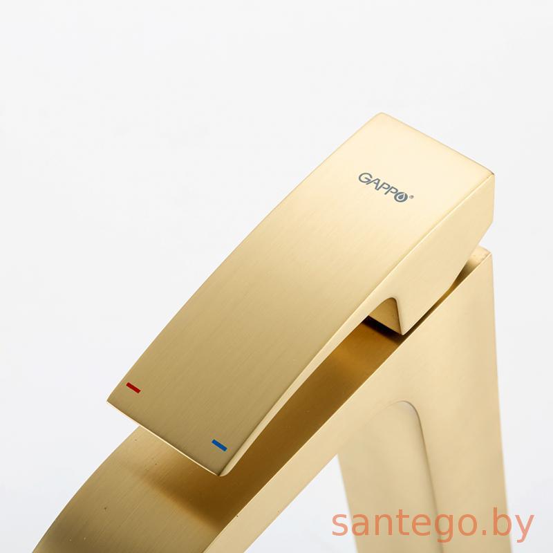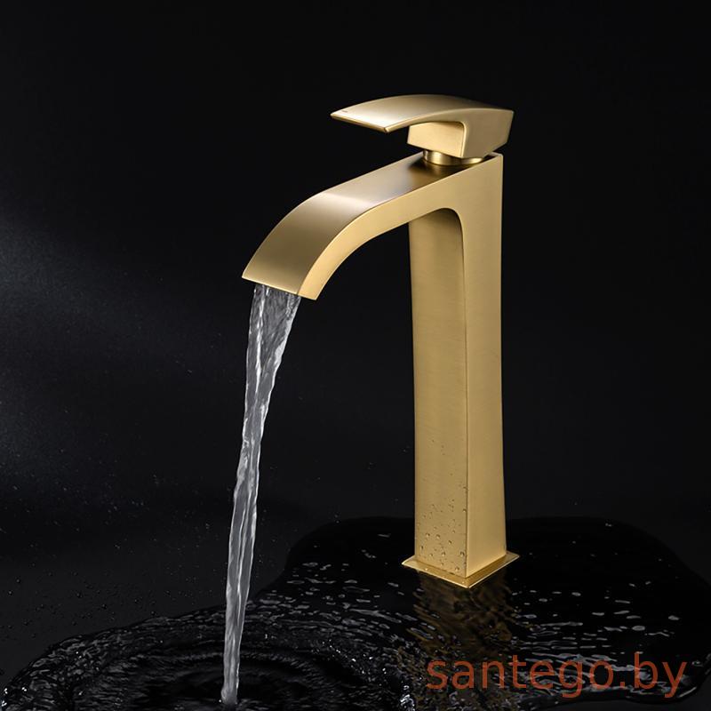 Смеситель для умывальника Gappo G1007-233 золотой сатин, излив водопад.