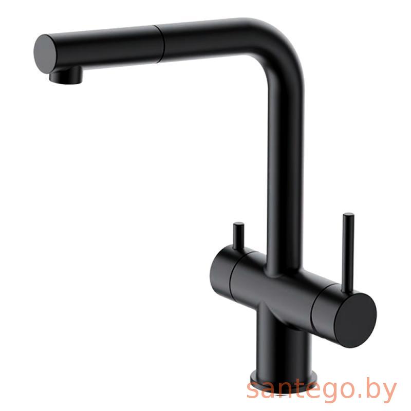 Смеситель для кухни с выдвижным изливом и подключением фильтра питьевой воды Gappo G4397-76 в чёрном цвете.