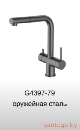Смеситель для кухни с выдвижным изливом и подключение фильтра питьевой воды Gappo G4397-79 в цвете оружейная сталь.