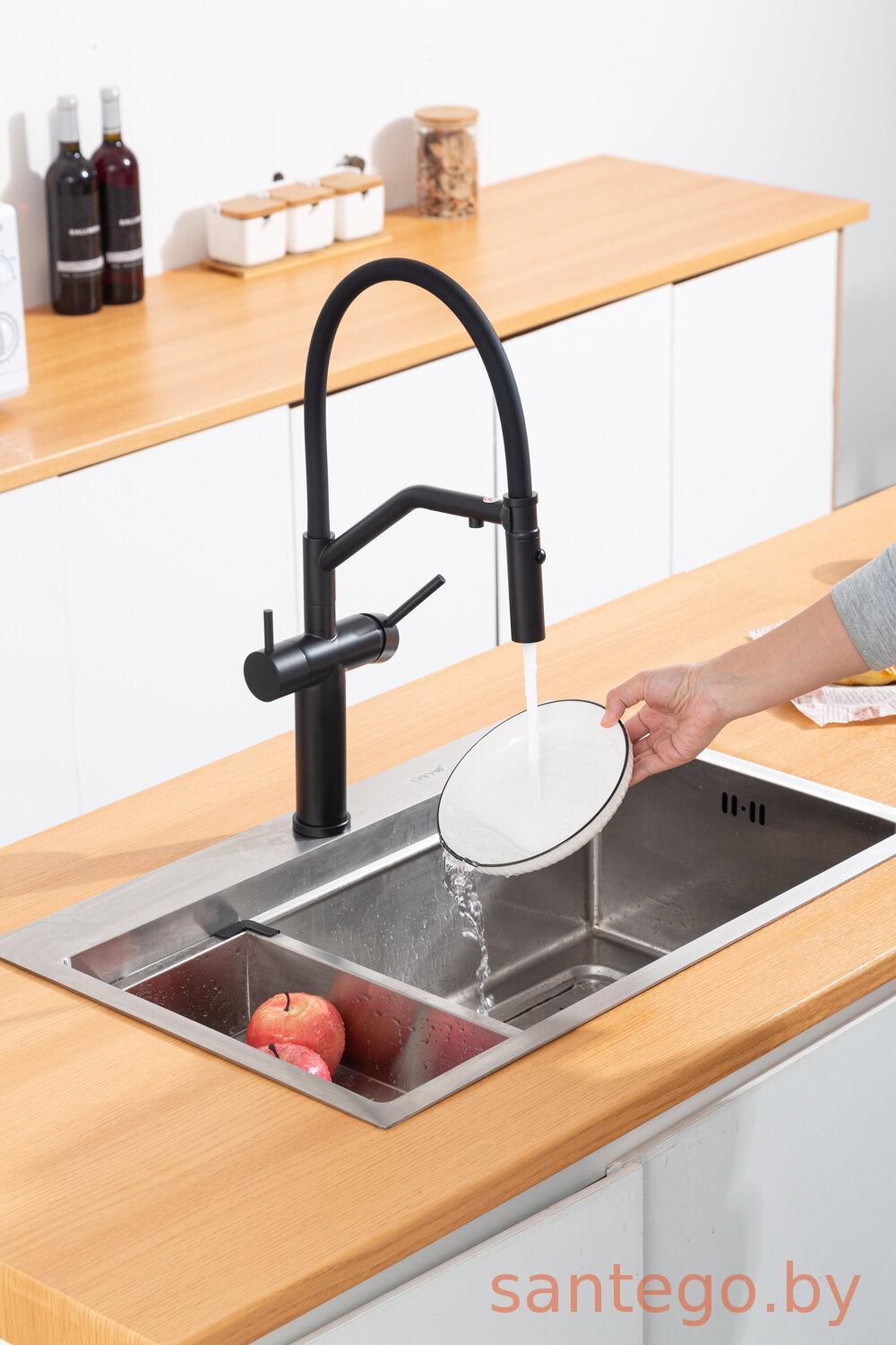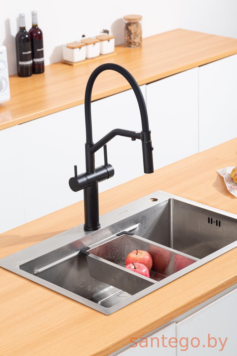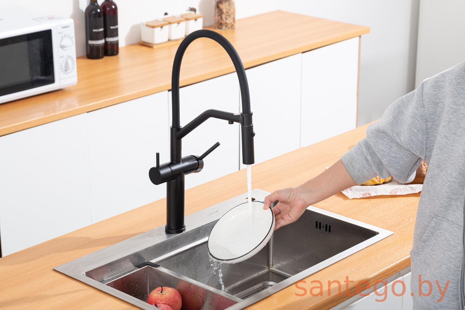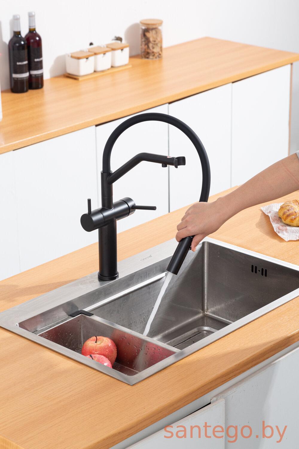 Смеситель для кухонной мойки Gappo G4399-86 с гибким изливом и подключением фильтра питьевой воды, черный
