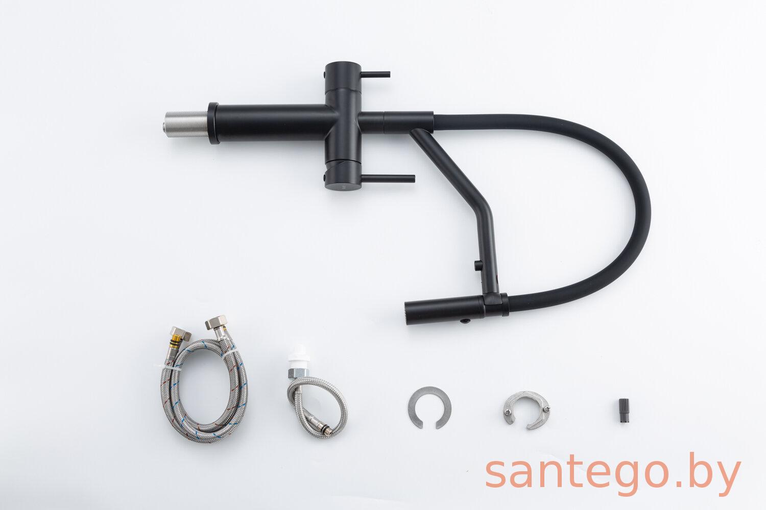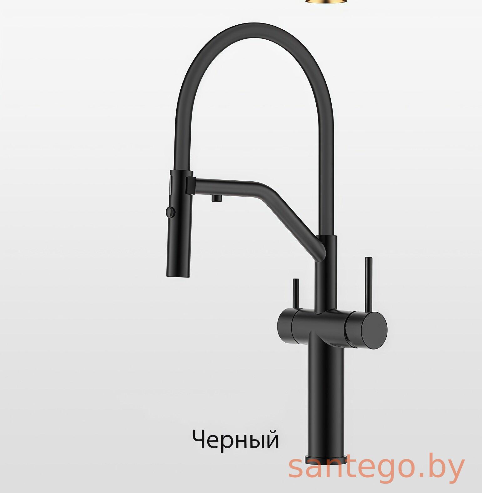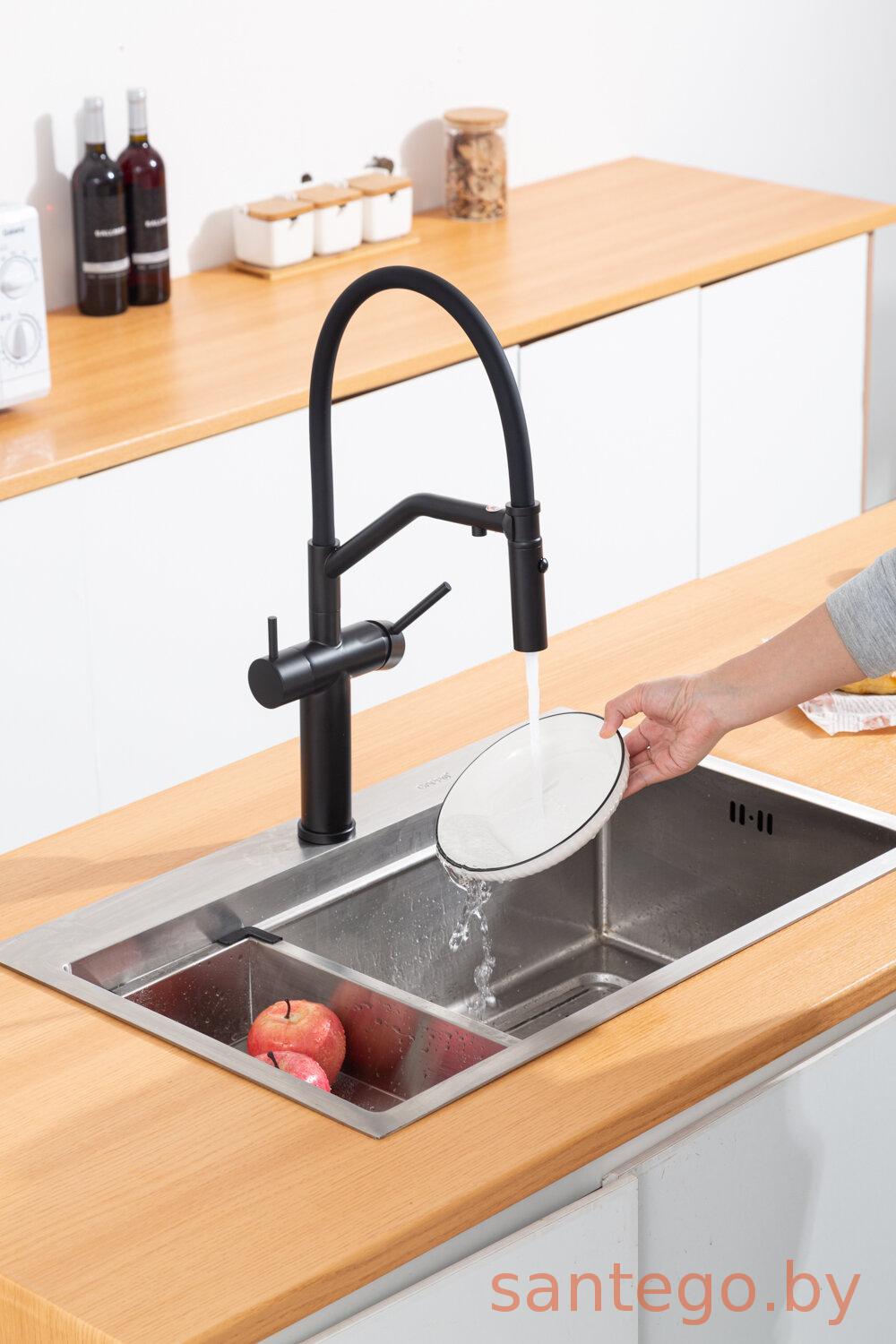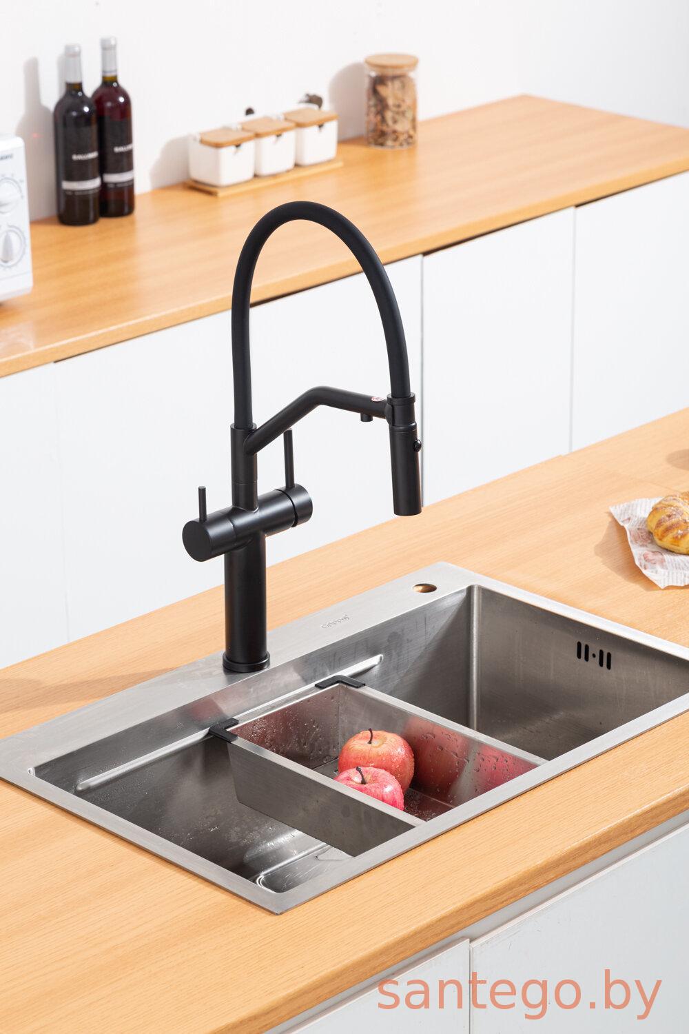 Смеситель для кухонной мойки Gappo G4399-86 с гибким изливом и подключением фильтра питьевой воды, черный