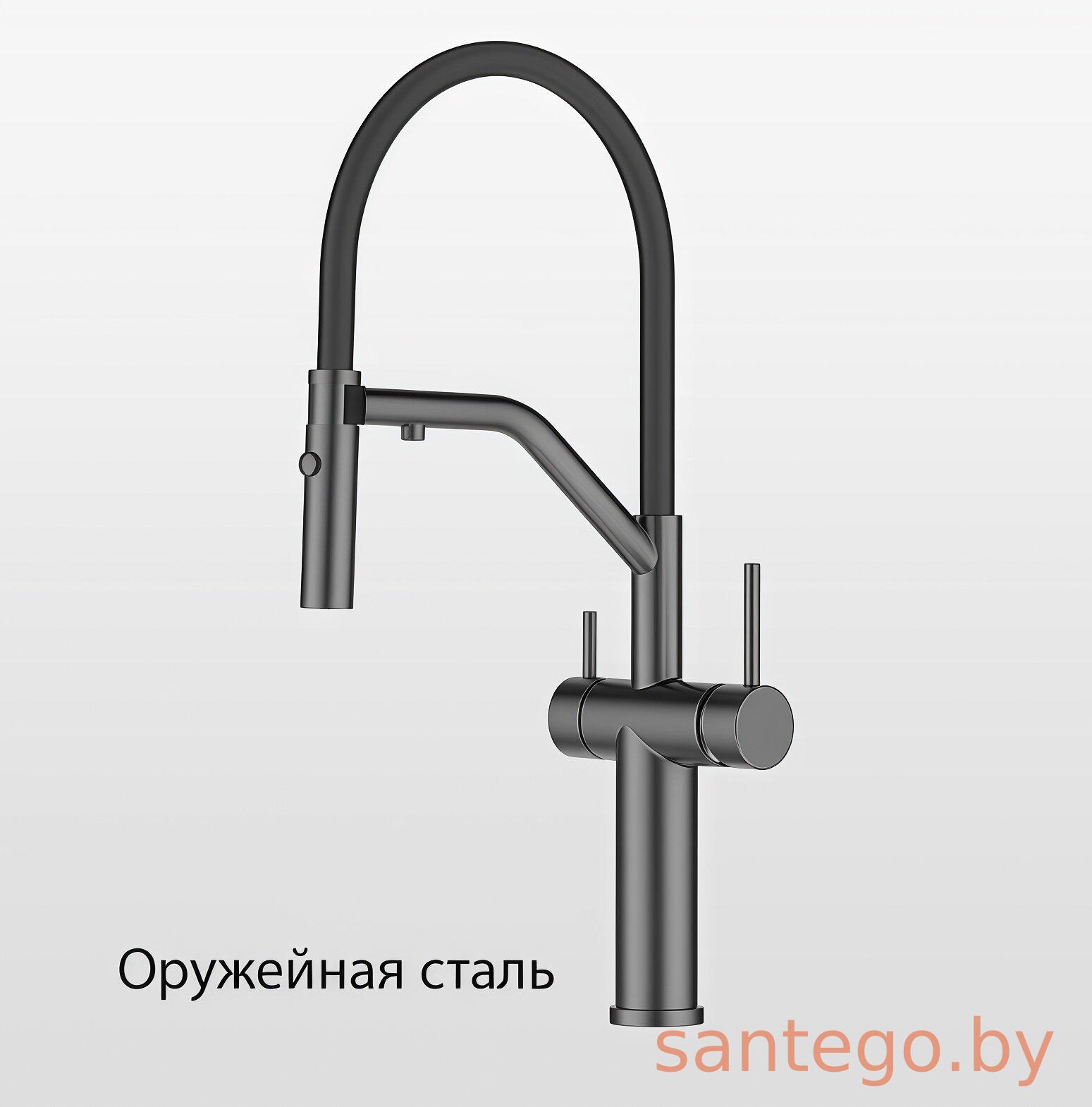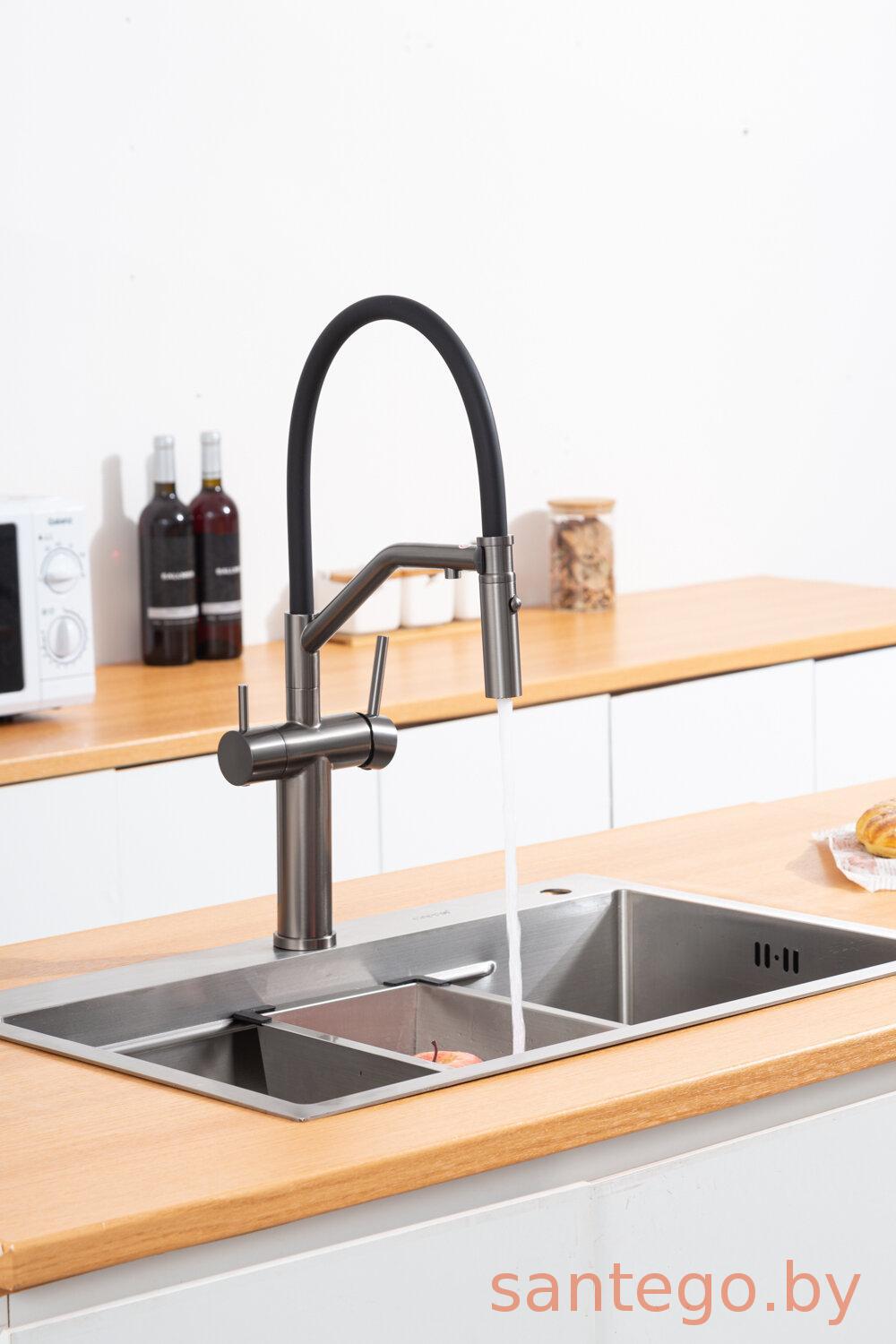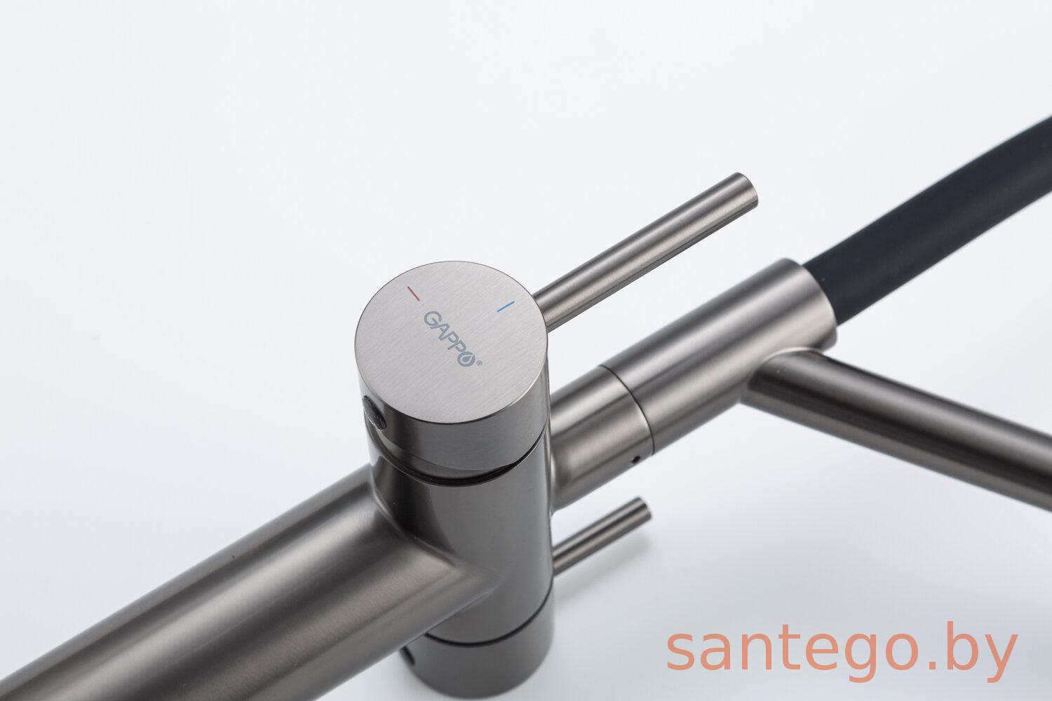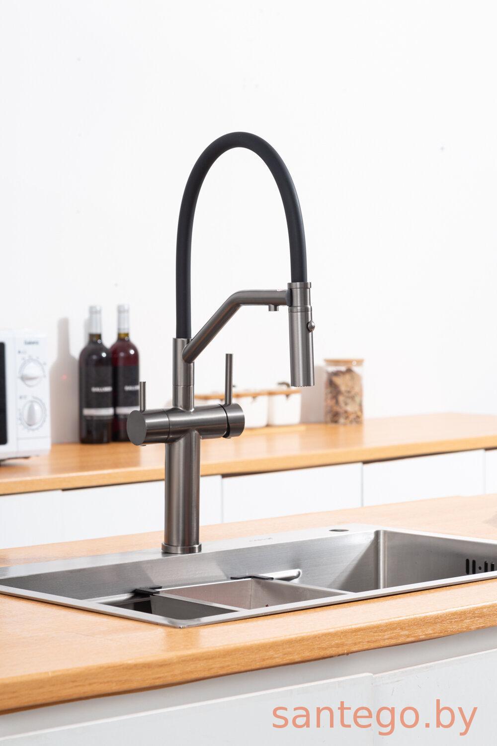 Смеситель для кухонной мойки Gappo G4399-89 с гибким изливом и подключением фильтра питьевой воды, оружейная сталь