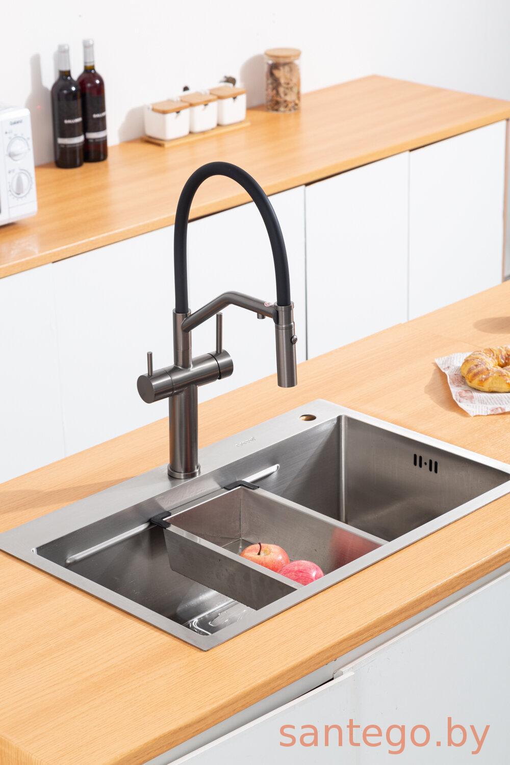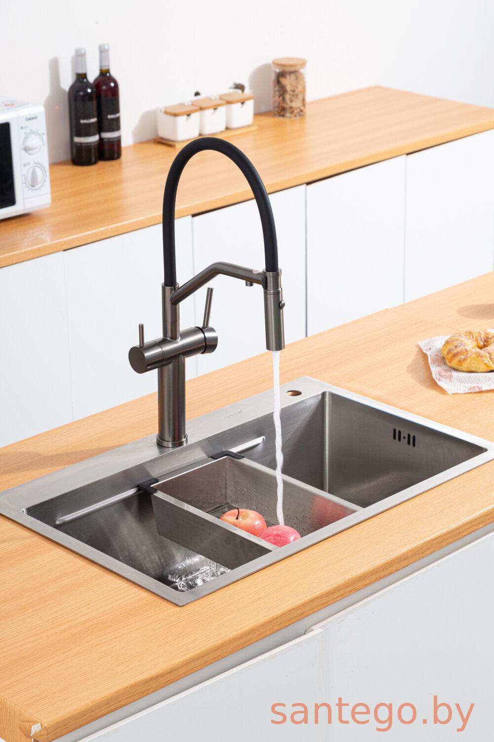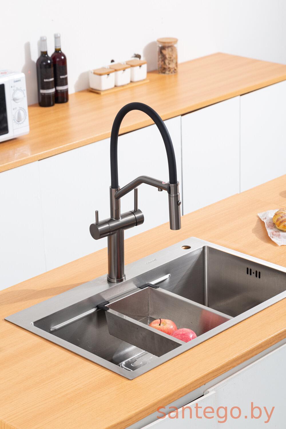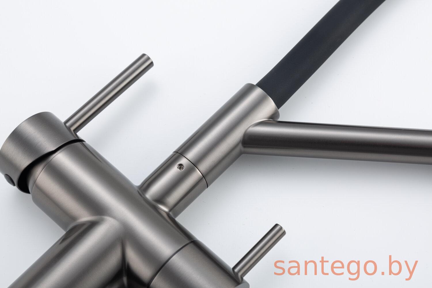 Смеситель для кухонной мойки Gappo G4399-89 с гибким изливом и подключением фильтра питьевой воды, оружейная сталь
