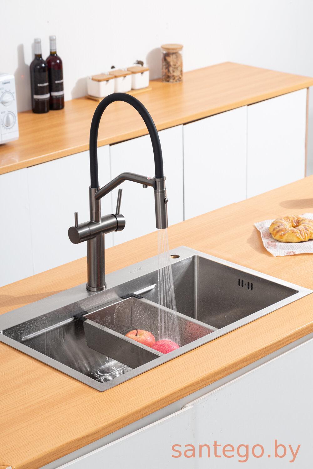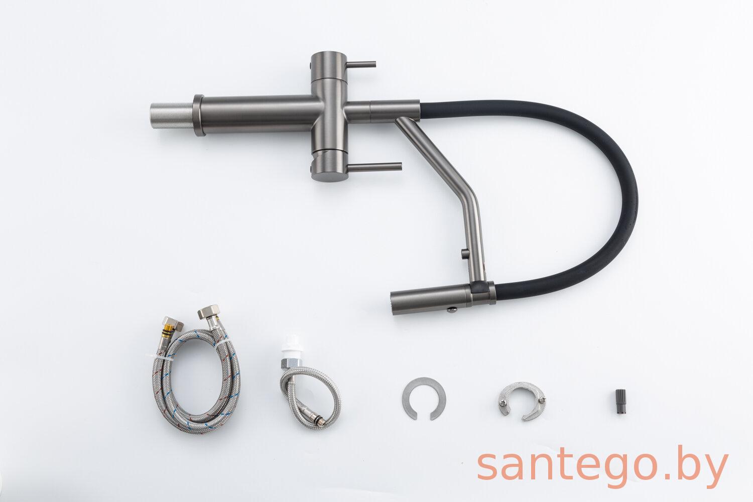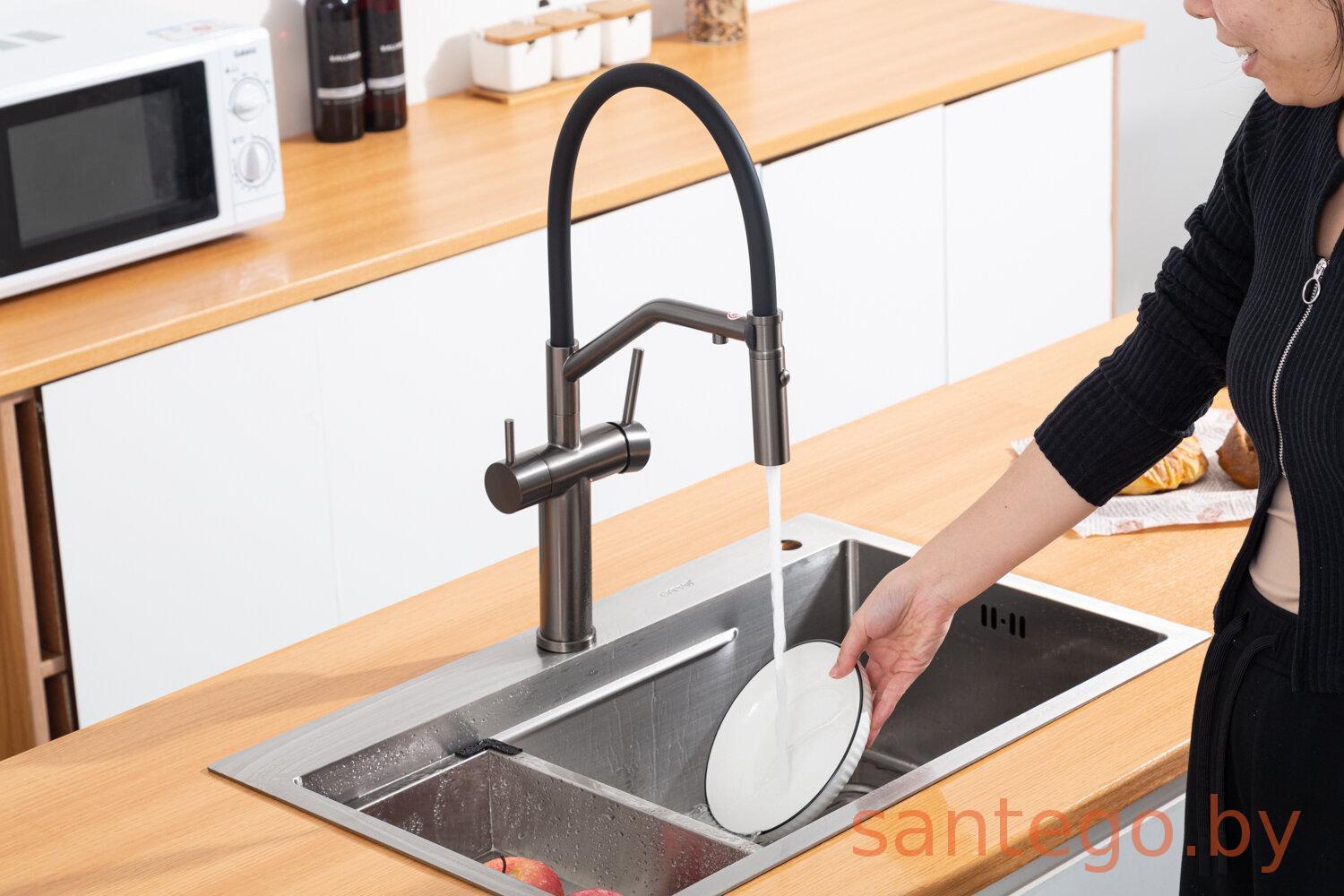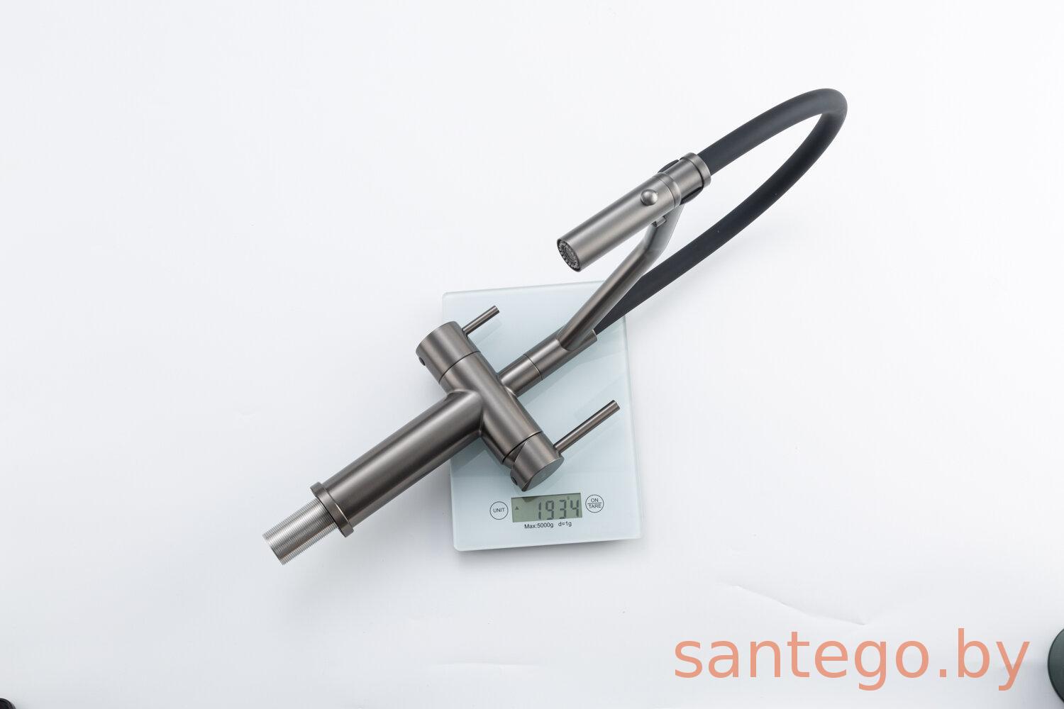 Смеситель для кухонной мойки Gappo G4399-89 с гибким изливом и подключением фильтра питьевой воды, оружейная сталь