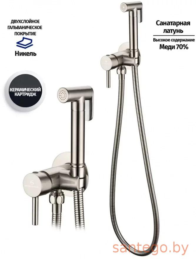Смеситель встраиваемый с гигиеническим душем Grocenberg GB001NK Никель.