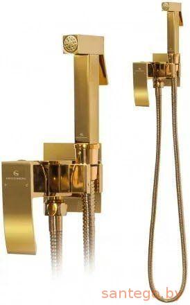 Смеситель встраиваемый с гигиеническим душем Grocenberg GB007GO Золото.