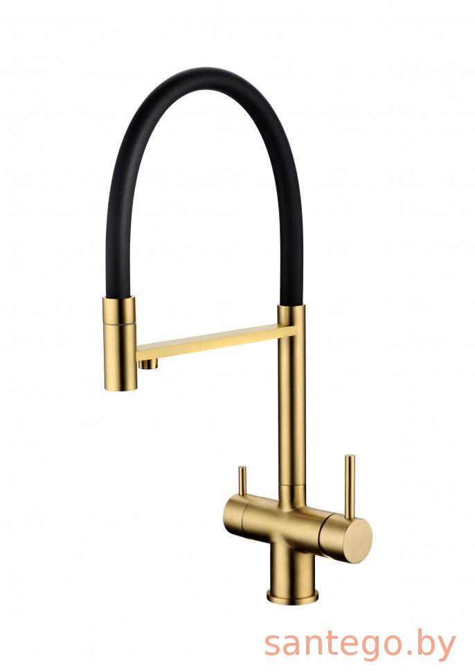Смеситель для кухни Grocenberg GB4099MG с гибким изливом Матовое золото.