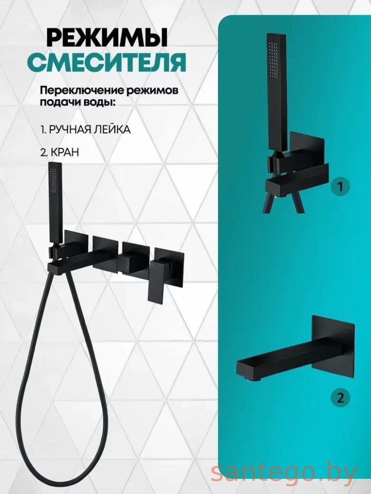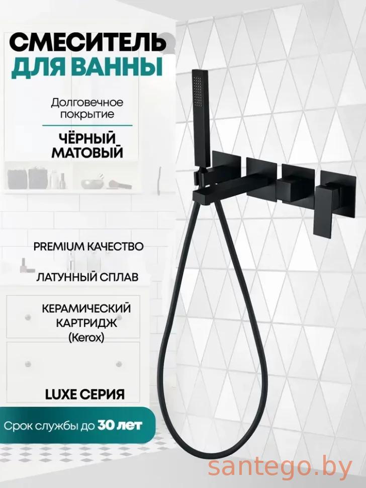 Смеситель для ванны скрытого монтажа Grocenberg GB5060BL Черный матовый с Картриджем Kerox (Венгрия).