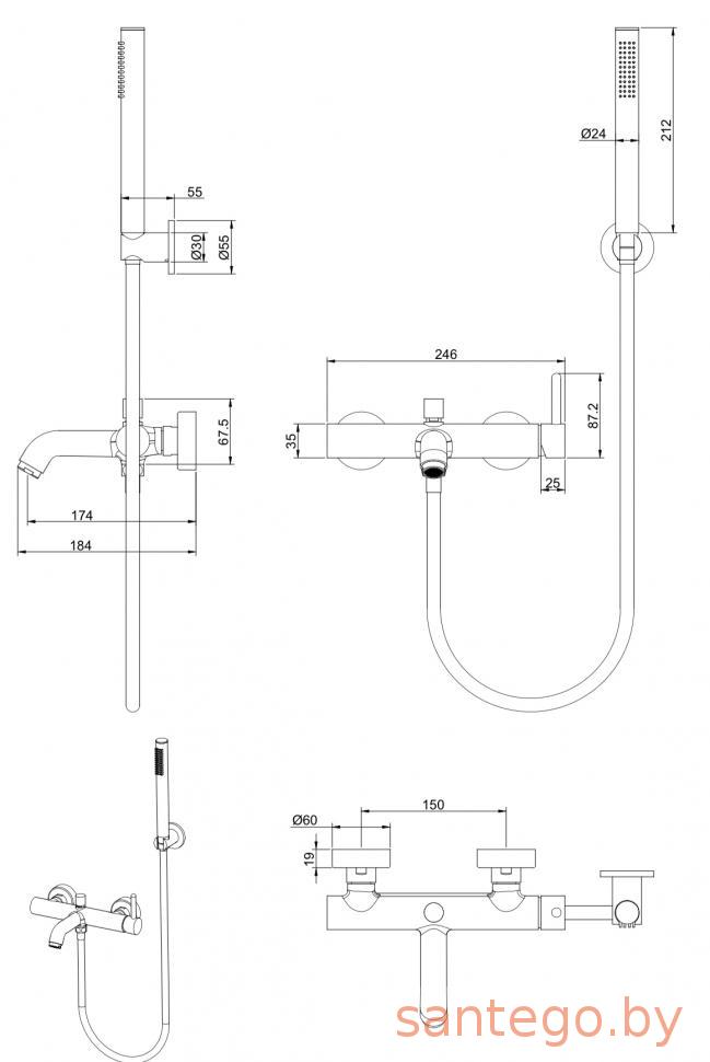| В комплекте | Душевой шланг 150 см, Душевая лейка, Держатель лейки, Комплект отражателей, Комплект эксцентриков |