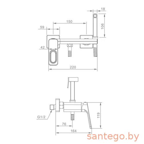 Смеситель с гигиенической лейкой Raglo R51.51.09 графит