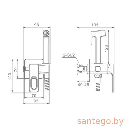 Гигиенический душ со смесителем Raglo R51.52.09 — встраиваемая модель из латуни с матовым графитовым покрытием. Оснащён однорычажным управлением, керамическим картриджем 25 мм и нажимным переключением на гигиеническую лейку. В комплект входит внутренняя часть и шланг 120 см.